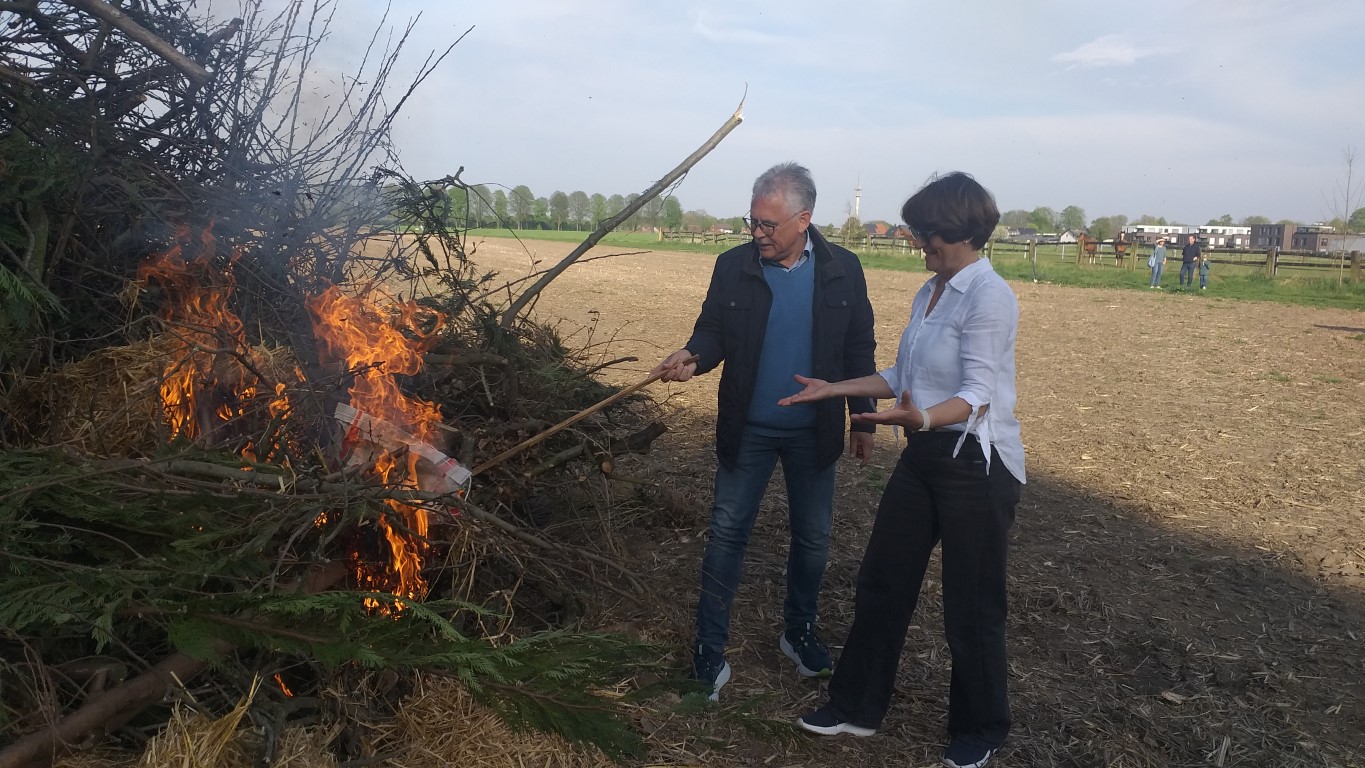 Durch das Königspaar Uli und Patricia wurde das Feuer entzündet. Ein zwischenzeitliches Schauer konnte die gute Laune nicht trüben.