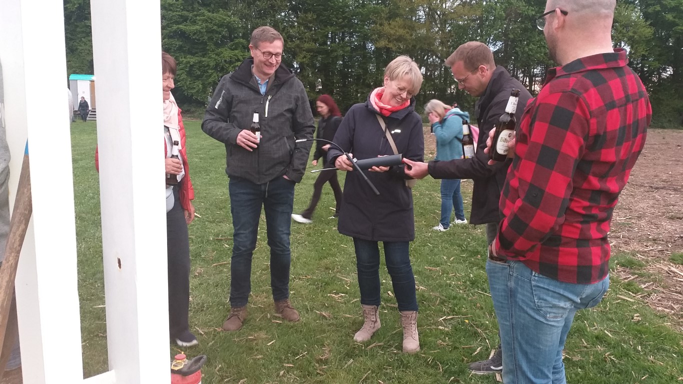 Durch das Königspaar Uli und Patricia wurde das Feuer entzündet. Ein zwischenzeitliches Schauer konnte die gute Laune nicht trüben.