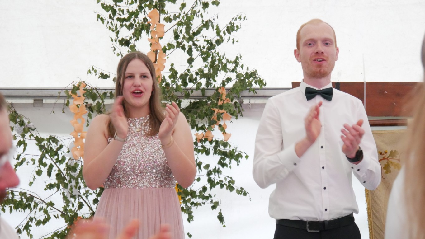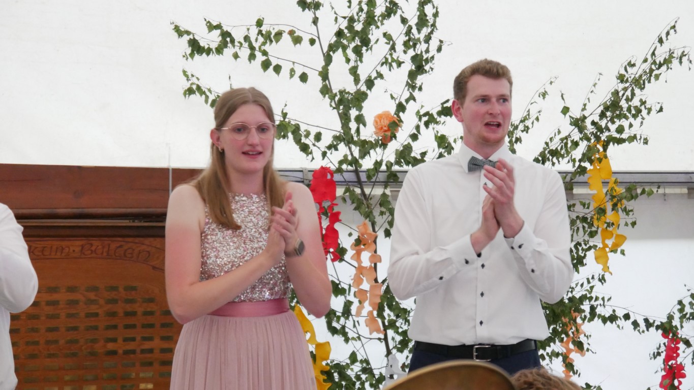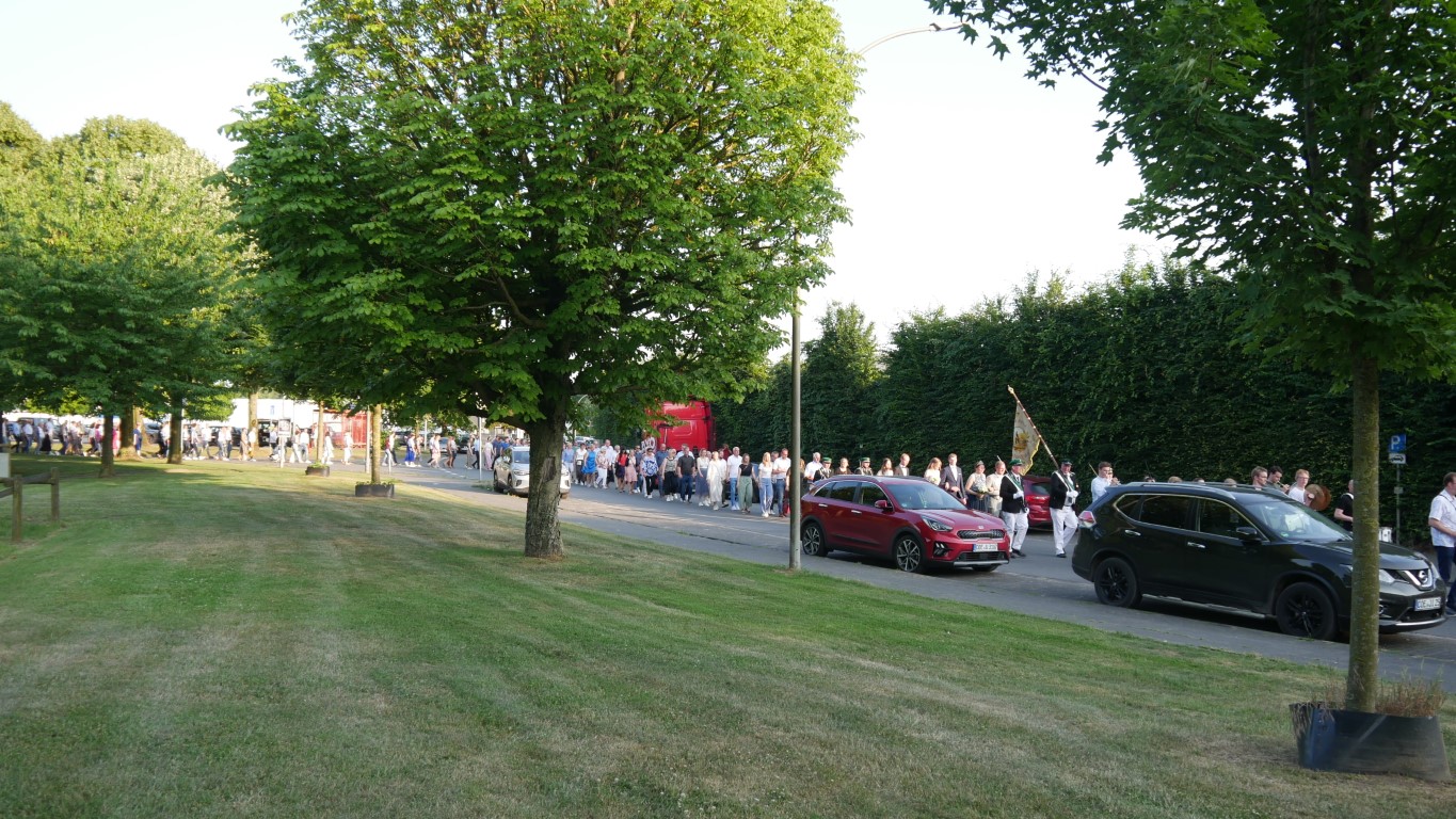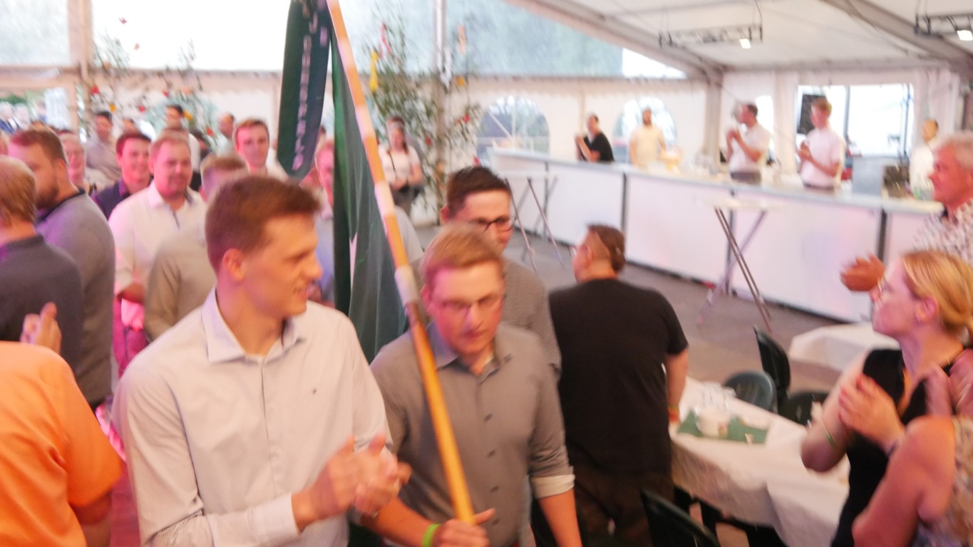 Fahnenträger sind Tom Volmer und Eliah Brück.
