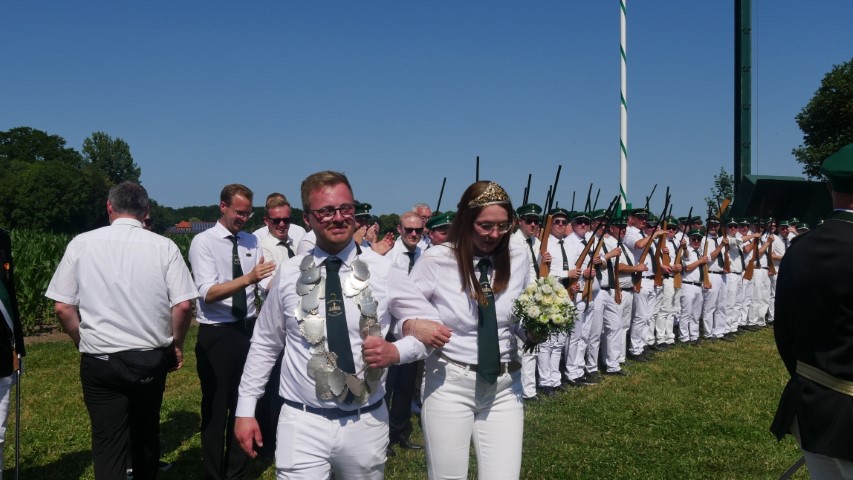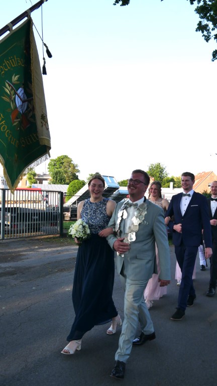 Der amtierende Königsthron um Christoph Homann und Liz Kleine Wolter sowie Offiziere und Schützen nahmen am Festumzug teil.