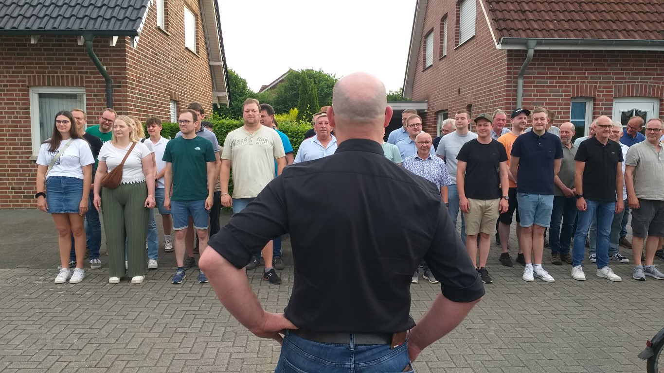Frederik Hüppe und Jan Termathe haben uns mit fachkundigen Beiträgen zu den einzelnen Produktionsschritten zur Herstellung der Krampe Kipper durch die Werkhallen geführt. So wurden uns Einblicke in ein innovatives Coesfelder Unternehmen mit ca. 220 Mitarbeiter gewährt. Anschließend haben wir uns in der Gaststätte Kalksbecker Hof bei Essen und Getränken über das gesehenen ausgetauscht.