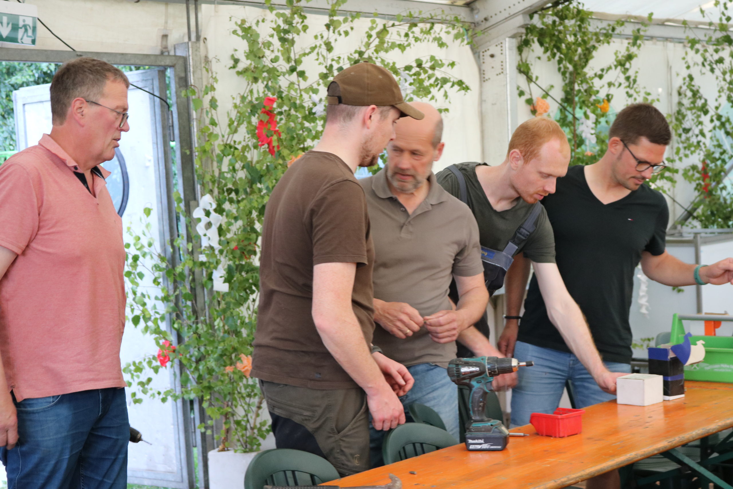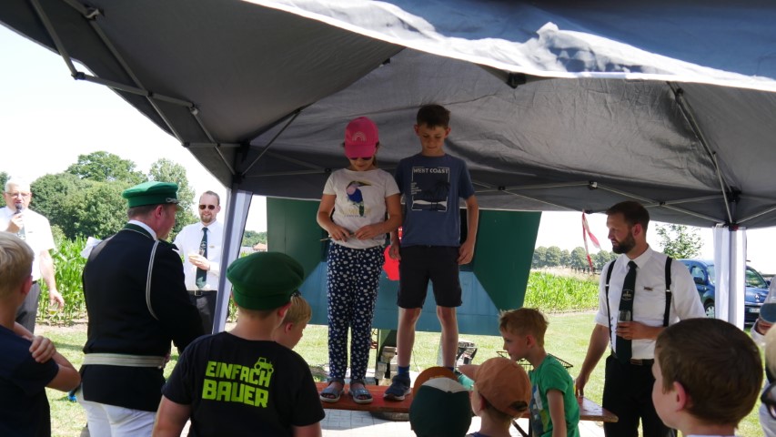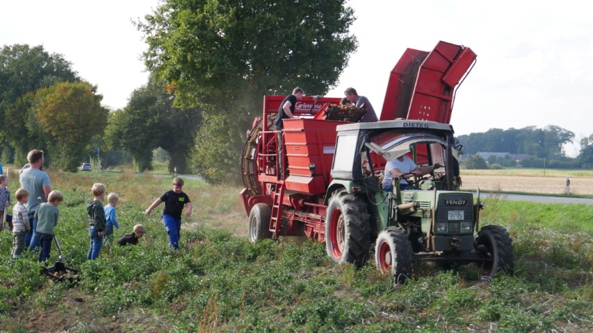 bei strahlendem Spätsommerwetter am Sonntagnachmittag feierten wir unser Erntedank- und Familienfest auf dem Hof Homann. Rund 90 Erwachsene und 30 Kinder nutzten die Gelegenheit gemeinsam den Herbstanfang zu begrüßen und wurden mit einem abwechslungsreichen Programm belohnt. Besonderer Höhepunkt war in diesem Jahr die Kartoffelernte. Mit der Grepe oder ganz einfach mit den Händen durften die Kinder die Knollen eigenhändig aus der Erde holen. Im Anschluss ging es kreativ weiter. Beim Kartoffeldruck entstanden Kunstwerke, und auch bunte Kürbisse wurden mit viel Fantasie bemalt. Währenddessen kamen die Erwachsenen bei einer Bilderschau auf ihre Kosten: Fotos der Schützenfeste aus den Jahren 2015 und 2025 weckten Erinnerungen und sorgten für lebhafte Gespräche.